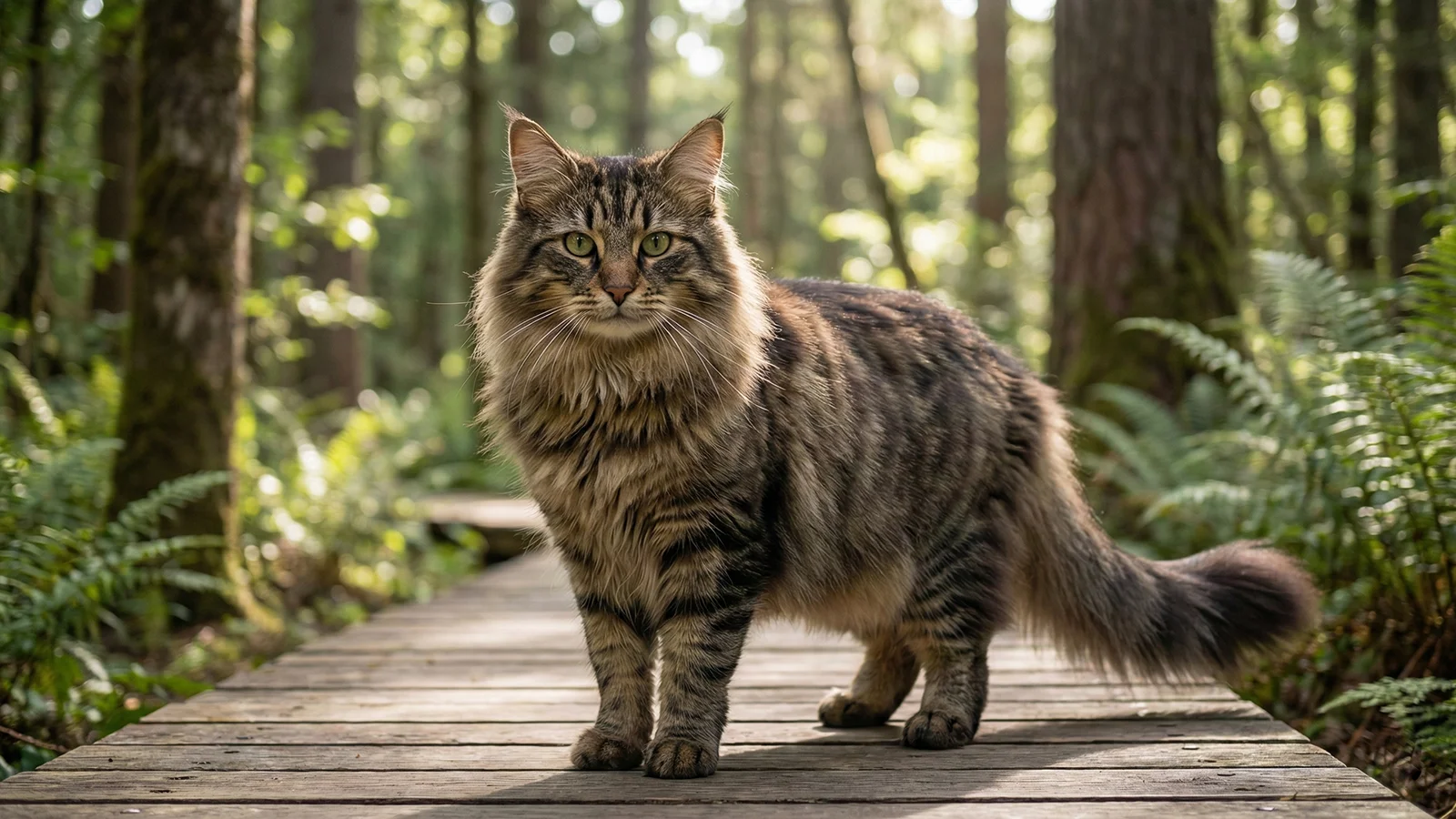 它们最具代表性的特征是双层被毛:外层被毛较长、略有光泽并具一定防水性,内层绒毛丰厚柔软,在颈部、胸口与大腿处形成明显的“鬃毛”和“毛裤”。毛色与花纹极其丰富,可见纯色、虎斑、双色、三花等多种变体。体重多在4–8 kg左右,体长可超过50 cm;个体发育成熟较慢,往往需要三至五年才能完全长成。对于铲屎官来说,关注的是体态是否匀称、身形灵活、精神与食欲稳定,而非单一数字。